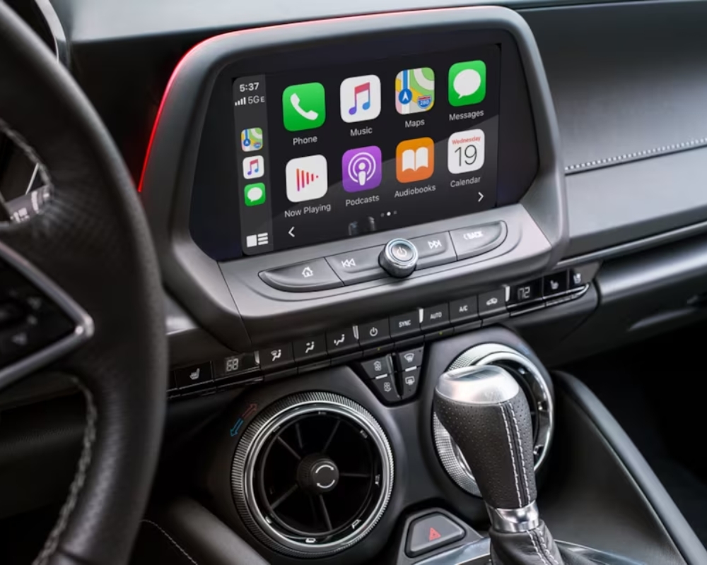 Technologically, the 2024 Camaro is equipped with an 8-inch touchscreen, wireless Apple CarPlay, and Android Auto functionality. Additional features like the head-up display and rear camera mirror ensure the Camaro is as advanced in technology as it is exhilarating to drive.