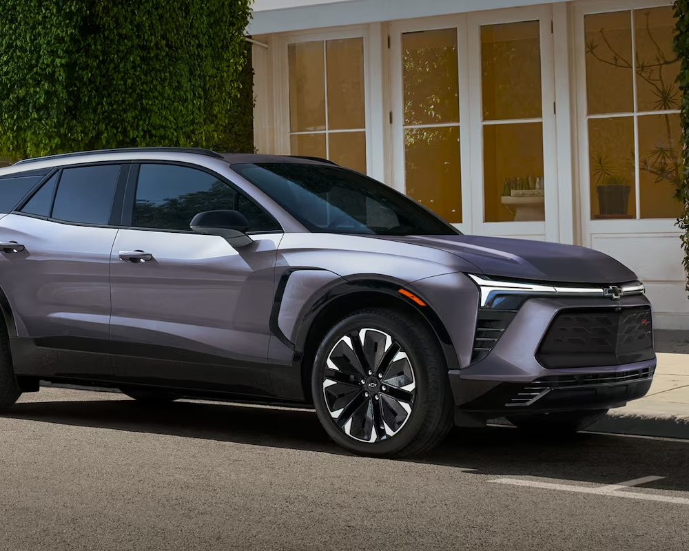 The Blazer EV delivers impressive performance across its trim levels. The LT trim is equipped with a dual-motor all-wheel-drive system, producing 300 horsepower and offering an estimated 455 kilometres of range. The RS trim is available in rear-wheel drive with 365 horsepower and an estimated 538 kilometres of driving range or in all-wheel drive with dual motors. The high-performance SS trim features a powerful 615 horsepower engine, standard all-wheel drive, and can accelerate from 0 to 100 kilometres in approximately 3.4 seconds.
